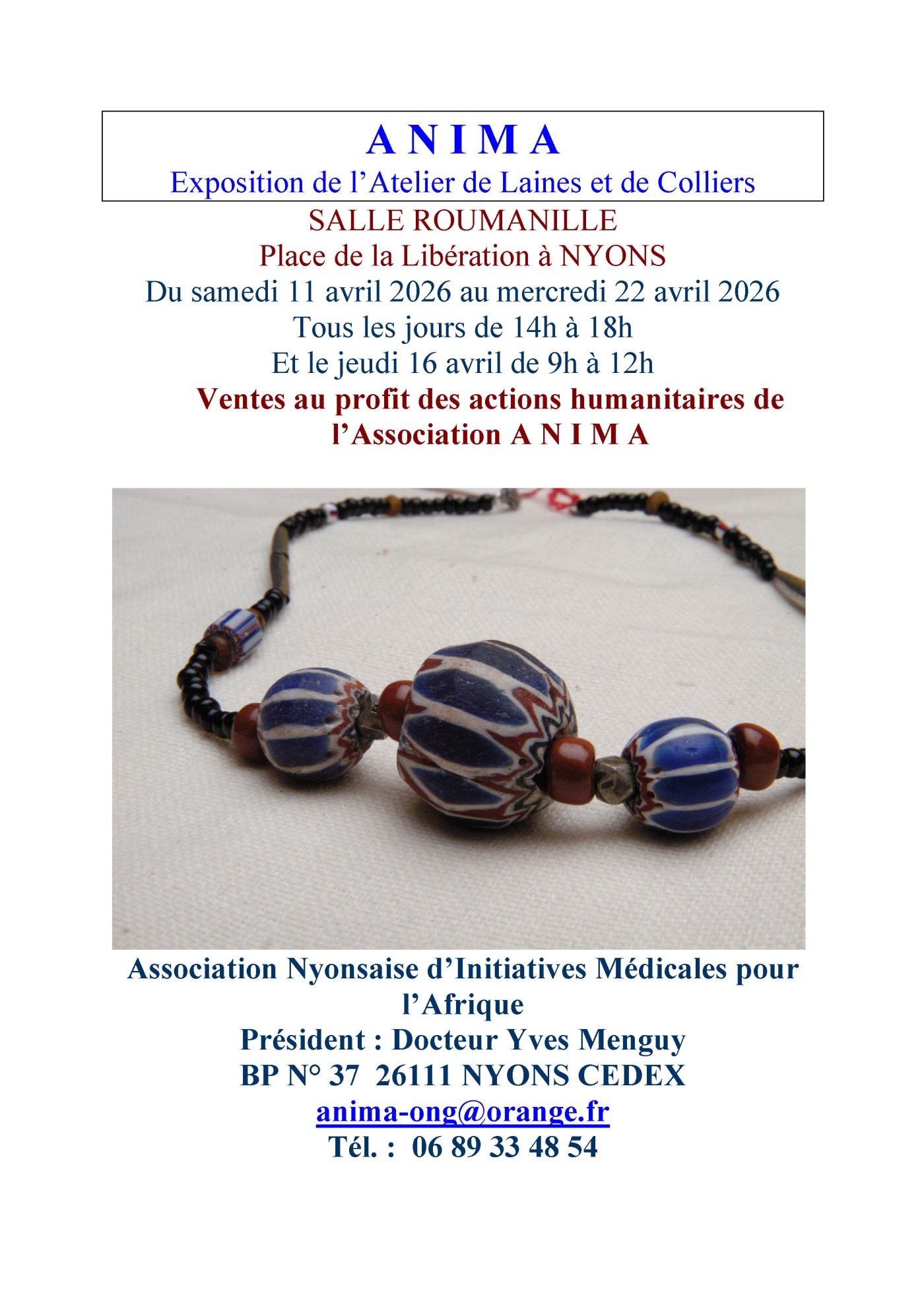 Exposition de l’atelier de Laines et de Colliers de l'Association Nyonsaise d’Initiatives Médicales pour l’Afrique (ANIMA).